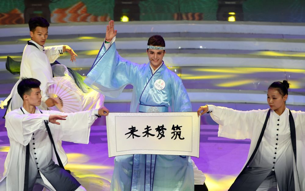 ↑ 这是在河南郑州举办的第十二届“汉语桥”世界中学生中文比赛决赛现场。