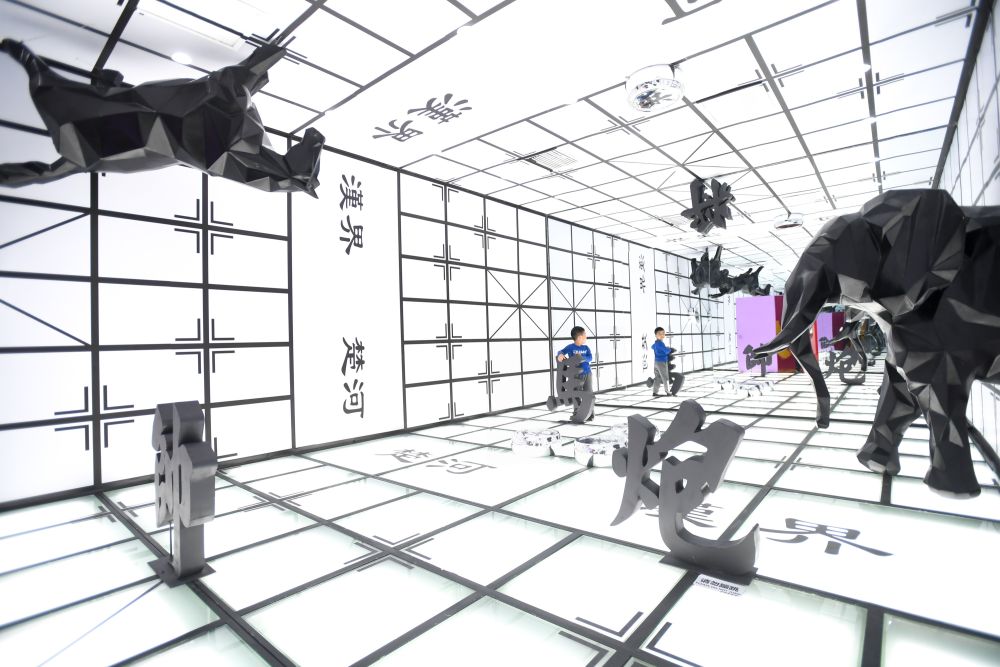 ↑这是湖南省长沙市“字在其中”汉字国潮艺术展(2019年9月21日摄)。