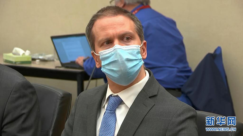 这张视频截图显示,4月20日,美国前白人警察德雷克·肖万在明尼苏达州明尼阿波利斯市听法官宣判。新华社/美联
