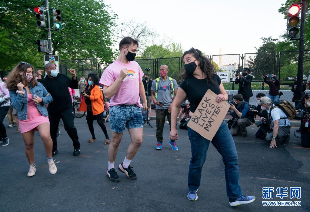 4月20日,人们得知肖万被控的谋杀和过失杀人等三项罪名全部成立后,在美国华盛顿白宫前聚集。新华社记者 刘杰 摄