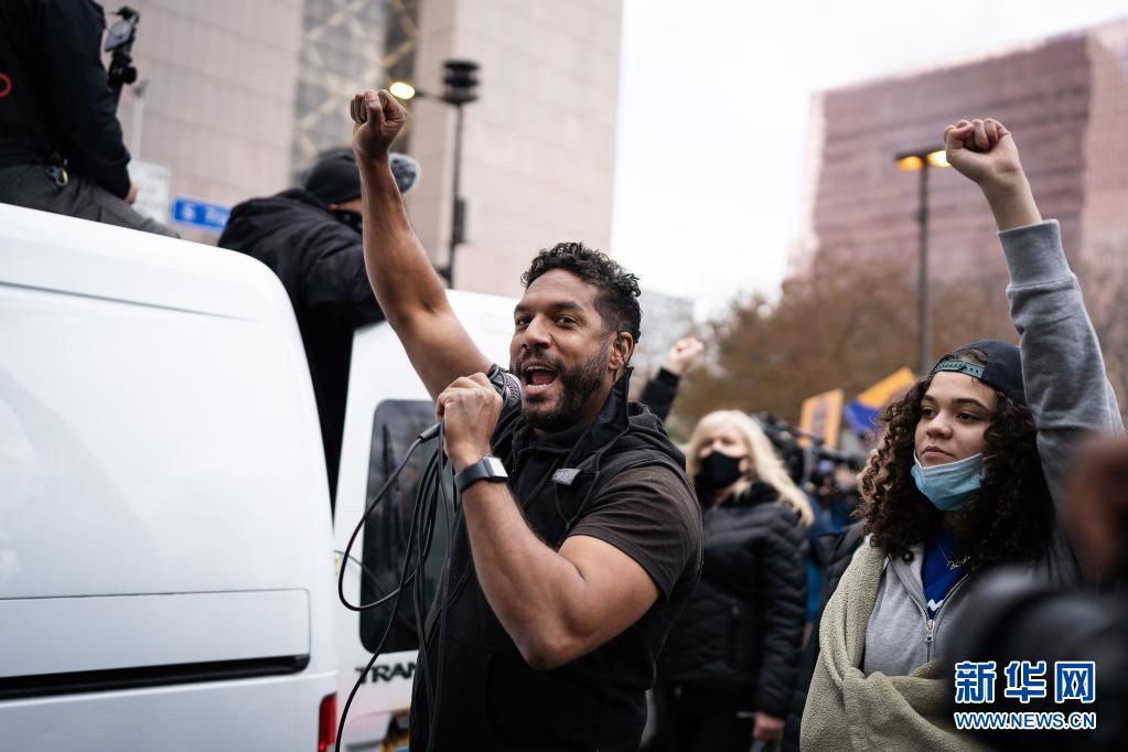 4月20日,人们得知肖万被控的谋杀和过失杀人等三项罪名全部成立后,在美国明尼阿波利斯市的法庭附近聚集。新华社发(本·布鲁尔摄)