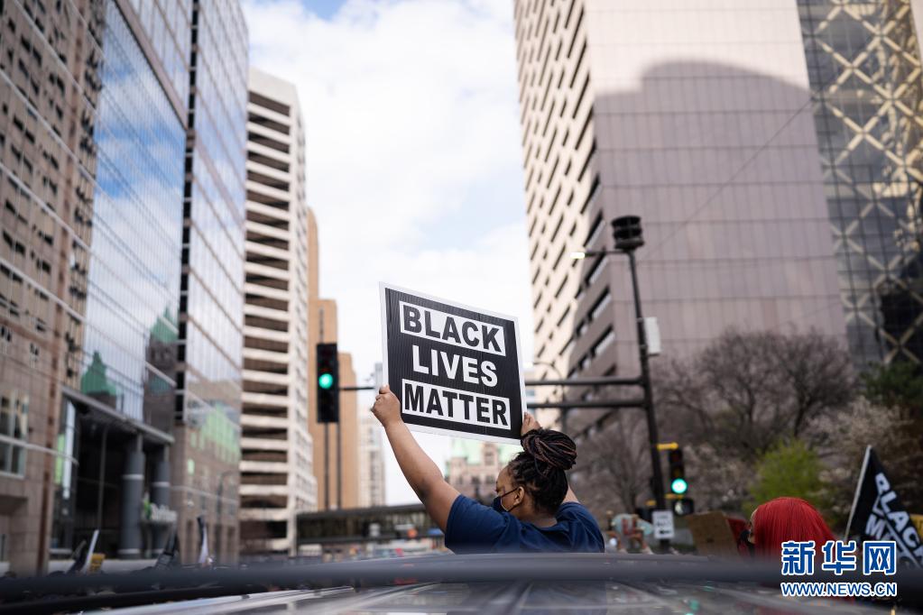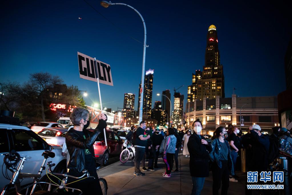 4月20日,得知肖万被控的谋杀和过失杀人等三项罪名全部成立后,民众手举标语聚集在美国明尼阿波利斯市的法庭附近。新华社发(本·布鲁尔摄)