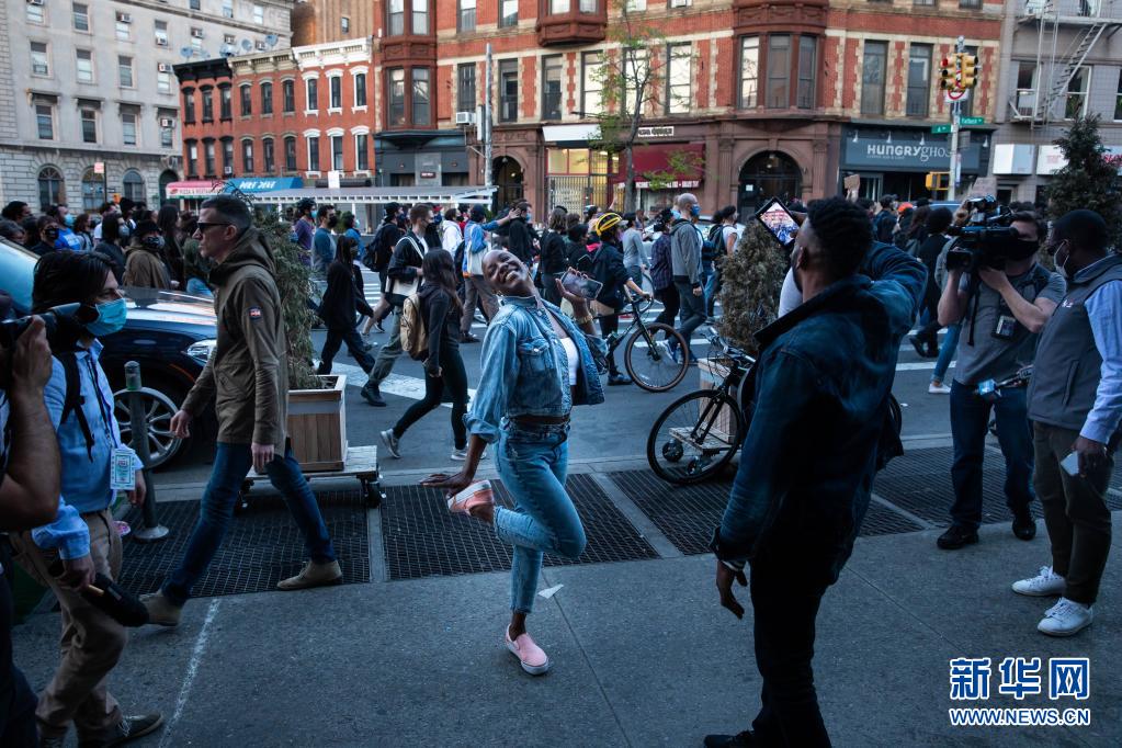 4月20日,人们得知肖万被控的谋杀和过失杀人等三项罪名全部成立后,在美国纽约巴克莱中心外聚集。新华社发(郭克摄)