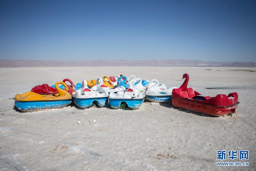 这是2019年11月11日在伊朗法尔斯省马哈尔洛湖拍摄的停放在湖底的游船。由于气候变化和干旱,马哈尔洛湖干涸严重。