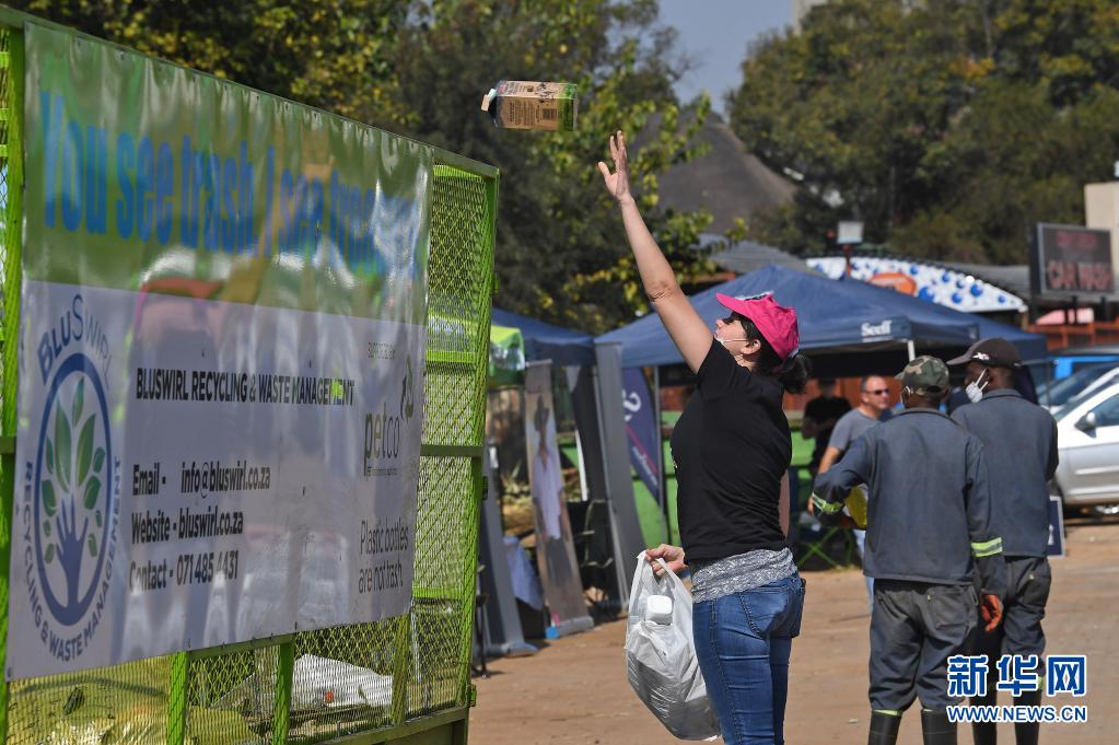 4月22日,南非比勒陀利亚的志愿者将可回收垃圾放入指定地点。