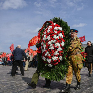 当天,人们到俄罗斯首都莫斯科红场的列宁墓前献花,纪念无产阶级革命家列宁诞辰151周年。