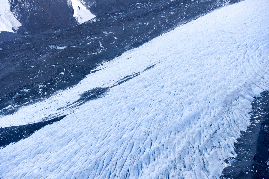 ↑新西兰研究机构称,该国2020年经历一个世纪来最暖冬季。受气候变化影响,新西兰南岛的冰川正在加速消退。这是2020年7月13日在新西兰南岛库克山国家公园航拍的塔斯曼冰川。新华社记者 郭磊 摄