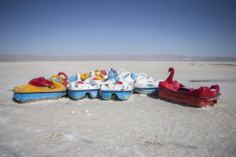 ↑这是2019年11月11日在伊朗法尔斯省马哈尔洛湖拍摄的停放在湖底的游船。由于气候变化和干旱,马哈尔洛湖干涸严重。新华社发(哈拉比萨斯摄)