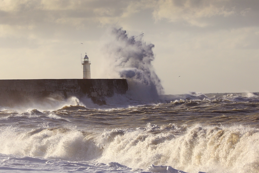 ↑2020年8月26日清晨,风暴“弗朗西斯”过境英国,海浪拍打着纽黑文港口的堤岸。风暴“弗朗西斯”给英国多地带来强降雨和强风天气。新华社发(蒂姆·爱尔兰摄)