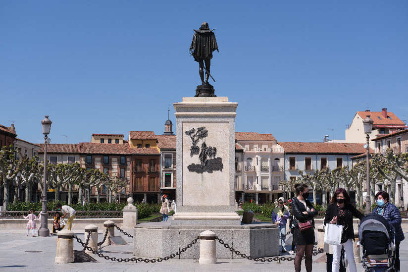 ↑西班牙埃纳雷斯堡的塞万提斯雕像,埃纳雷斯堡是塞万提斯的出生地。