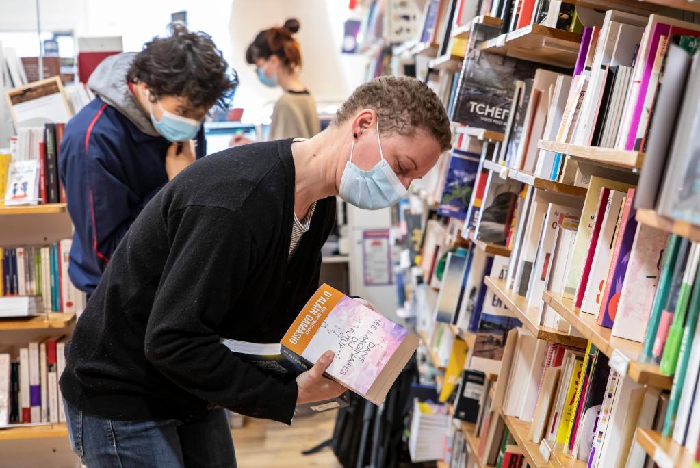 如今,他好像变了一个人,忙前忙后清点书目、招呼新老顾客。打不完的招呼、开不完的玩笑……他甚至没功夫擦一擦额头的汗珠。虽然法国目前仍处于新一轮“封城”状态,但管控措施较之前有很大改变,书店、音像店获准开放。