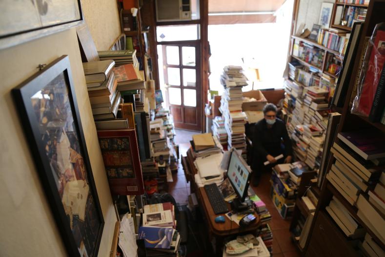 受疫情影响,以海外学者、本国书迷与大学生为主要客源的“历史”书店生意清淡。不过,店主埃尔达尔·凯尔肯内心平和。