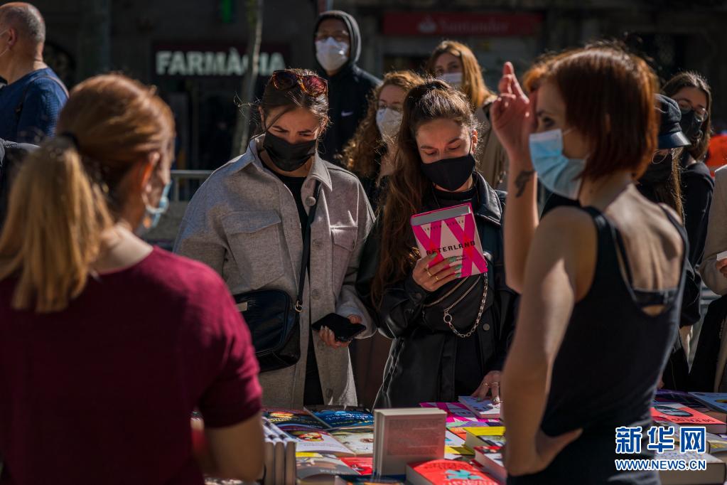 4月23日,人们在西班牙巴塞罗那街头选购图书。