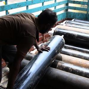 4月24日,一名工作人员在印度金奈的一处氧气瓶重新填充工厂工作。