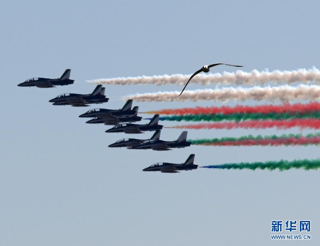 4月25日,意大利“三色箭”飞行表演队在罗马举行的纪念仪式上喷出代表意大利国旗颜色的红白绿三色烟雾。
