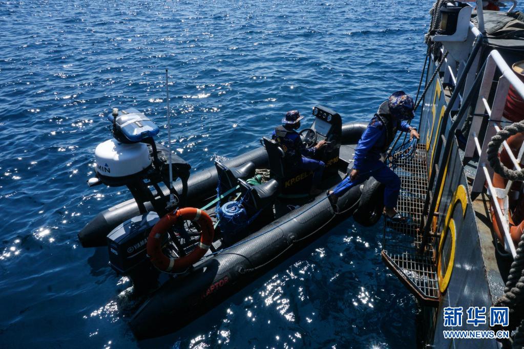 4月25日,搜救人员在印度尼西亚东爪哇省外南梦参与搜寻失联潜艇的工作。新华社发(库尔尼亚万摄)