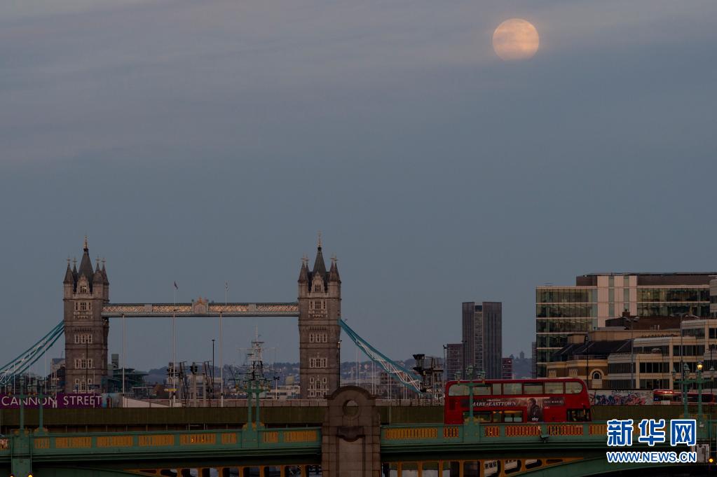 这是4月26日在英国伦敦拍摄的塔桥上空的“超级月亮”。