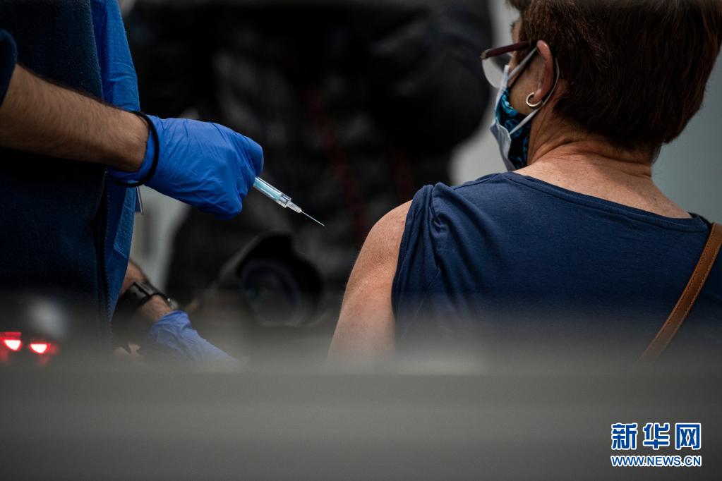 4月26日,一名女子在西班牙巴塞罗那会展中心接种新冠疫苗。