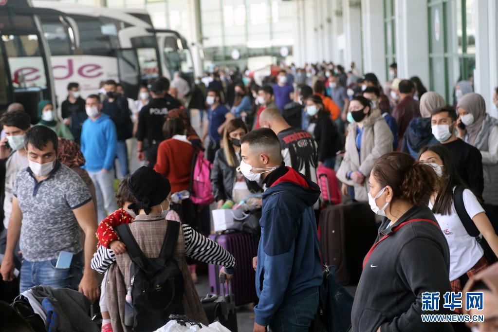 4月29日禁令实施前,人们聚集在土耳其安卡拉汽车站准备出行。