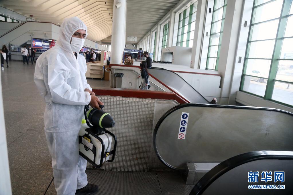 4月29日禁令实施前,一名身穿防护服的清洁工人在土耳其安卡拉的公共汽车站消毒。