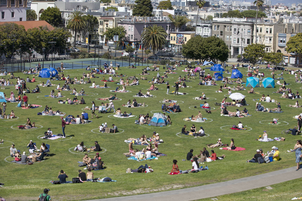 而在受新冠疫情影响的当下,人们则接受了保持社交距离,甚至在草地上画个圈圈野餐。