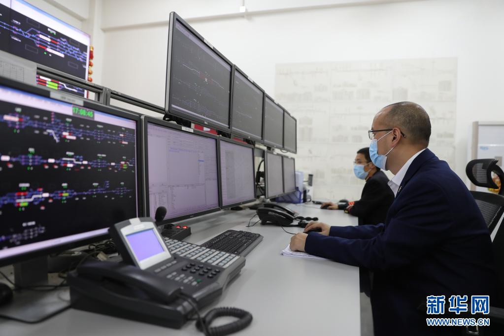 4月26日,在埃塞俄比亚亚的斯亚贝巴,中国土木工程集团有限公司亚吉铁路控制中心员工执行现场调度工作。