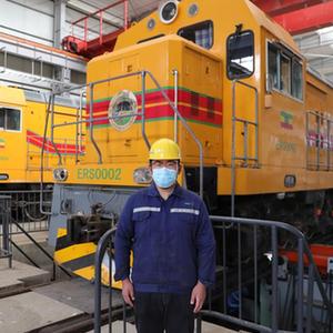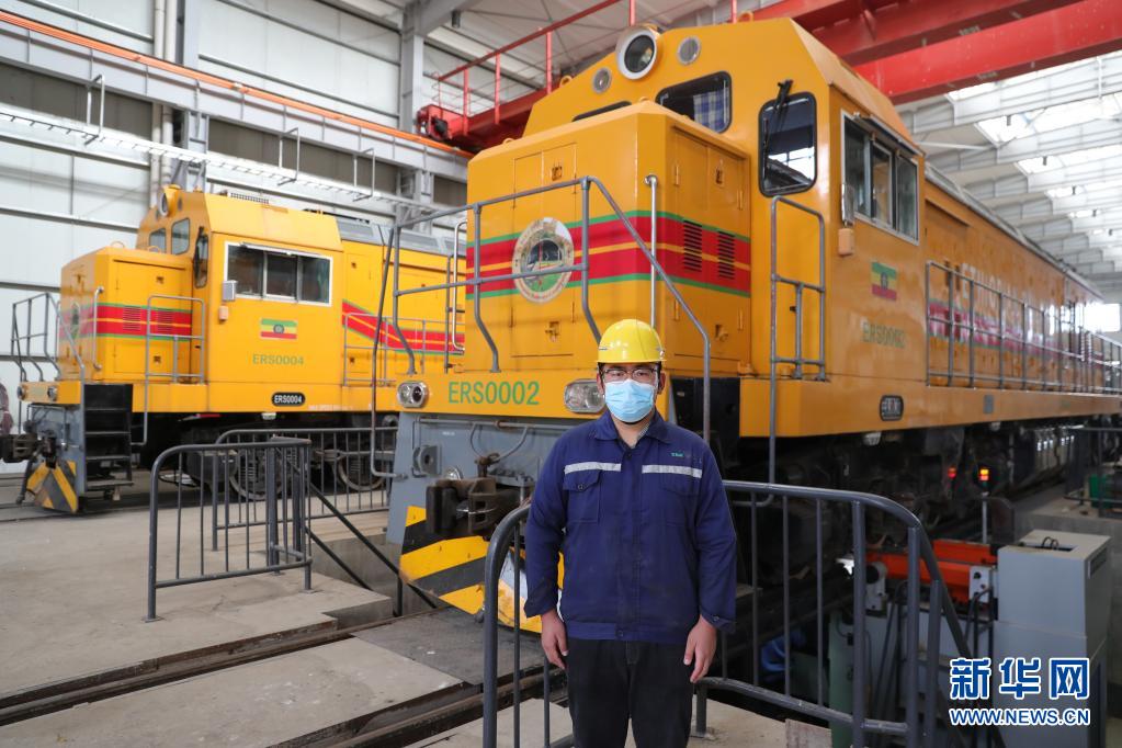 4月26日,在埃塞俄比亚亚的斯亚贝巴,中国土木工程集团有限公司亚吉铁路运维项目检修工郭伊航在检修现场工作。