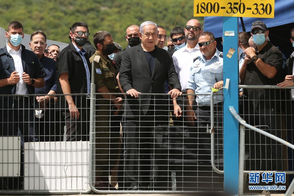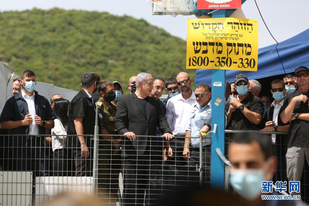4月30日,以色列总理内塔尼亚胡(前中)视察以北部梅龙山踩踏事故现场。新华社/基尼图片社