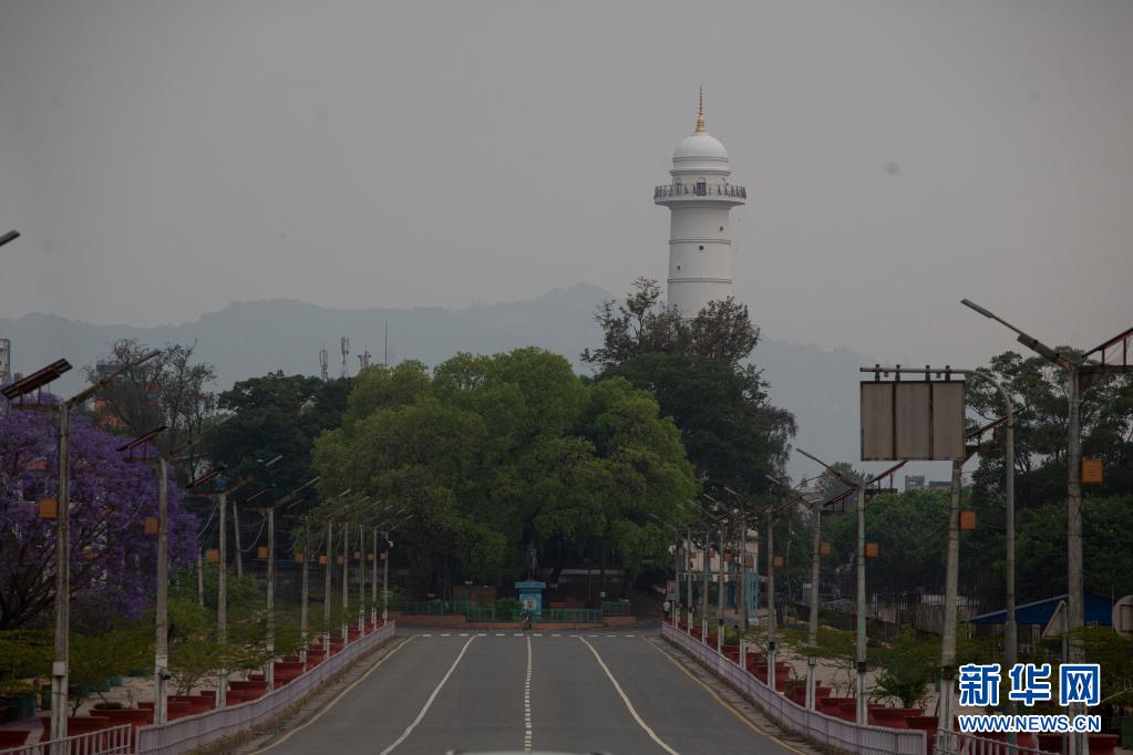 这是5月1日拍摄的尼泊尔加德满都空旷的街道。