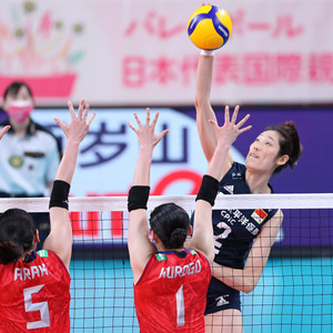 当日,在日本东京举行的东京奥运会排球测试赛第一日女排比赛中,中国队对阵日本队。