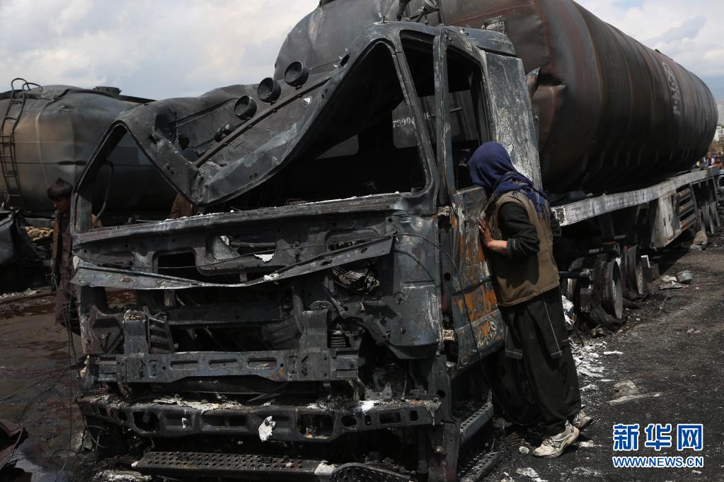 5月2日,一名男子在阿富汗喀布尔北部的油罐车爆炸现场查看。