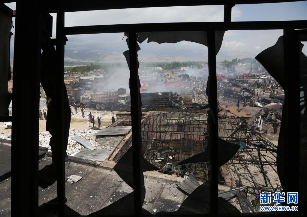 这是5月2日在阿富汗喀布尔北部拍摄的油罐车爆炸现场。