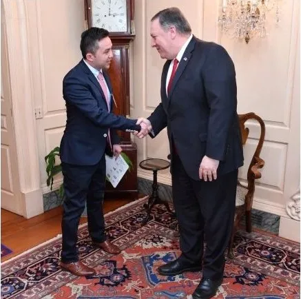 2019年3月26日,时任美国国务卿蓬佩奥“接见”甫尔海提·教待提