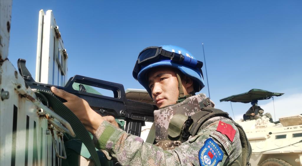 南苏丹,天刚蒙蒙亮,24岁的藏族小伙次仁旺堆就已穿戴好头盔和重达40斤的防弹衣,大步迈出营地门,一头扎入热浪中,开启在异国他乡执勤的新一天。