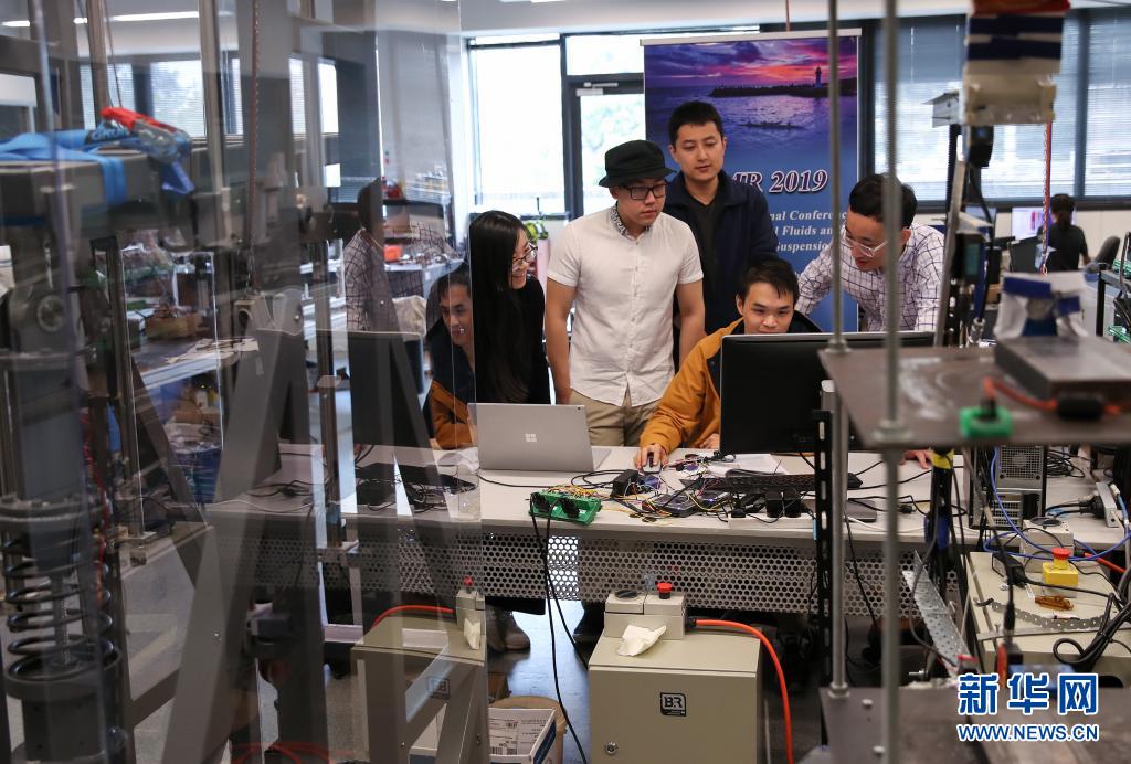 这是4月30日在澳大利亚伍伦贡大学拍摄的几名中国博士留学生在实验室工作。
