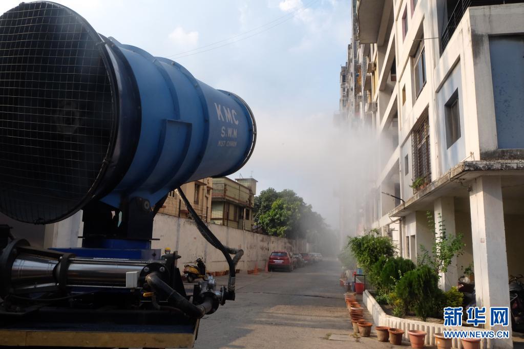 5月6日,在印度加尔各答,市政人员进行消杀工作。印度卫生部6日公布的疫情数据显示,该国新增新冠确诊病例数和新增死亡病例数均再次打破此前纪录,疫情持续恶化。新华社发