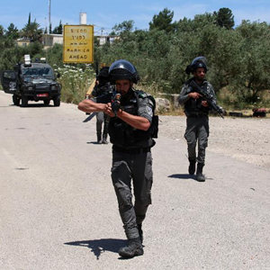 5月7日,以色列警察在约旦河西岸城市杰宁发生枪击事件的现场附近执勤。