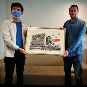 这幅作品的作者名叫耶兹迪米尔·米洛舍维奇。他郑重地将这幅装裱好的画作赠送给新华社萨拉热窝分社,也将一个波黑人的真挚情谊献给中国。