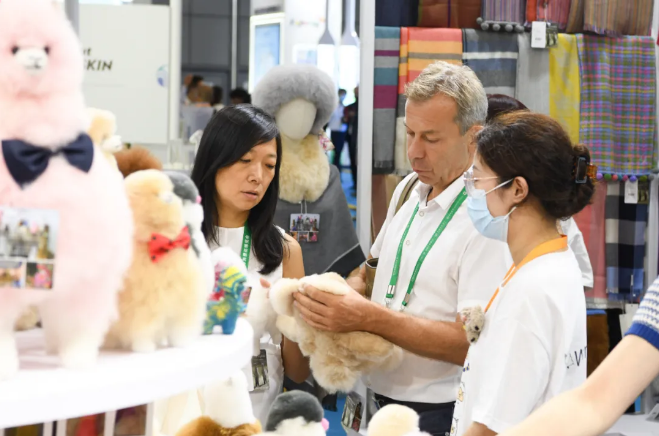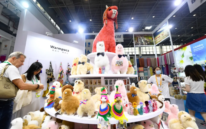 “是秘鲁的羊驼!”“好可爱啊!”“摸起来好舒服!”一些消费者路过情不自禁上前围观、拍照。“我觉得这个展位是整个场馆幸福感最高的地方。”刚刚买下一对羊驼玩偶准备送给外甥女的杨先生说。