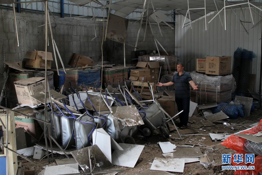 5月11日,以色列对加沙地带实施空中打击后,居民在加沙城查看受损房屋的情况。