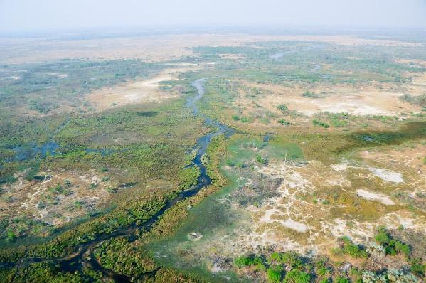 这是2015年10月12日航拍的博茨瓦纳奥卡万戈三角洲景色。新华社记者 吕天然 摄