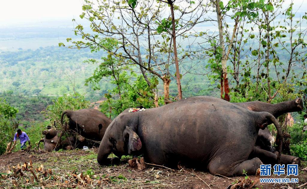 这是5月14日在印度阿萨姆邦纳加奥恩地区拍摄的死去的象。