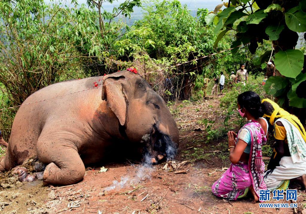 5月14日,人们在印度阿萨姆邦纳加奥恩地区一头死去的象旁祷告。