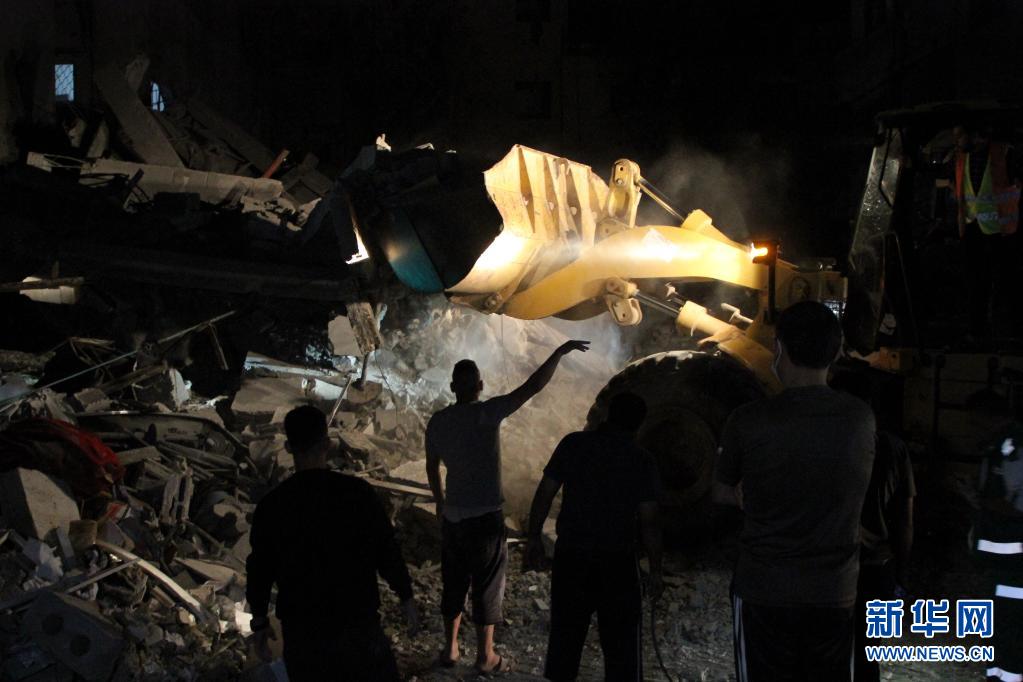 5月15日,救援人员在加沙城的空袭废墟中搜救。