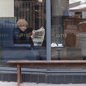 5月17日,一名顾客在英国伦敦一家咖啡馆看报。
