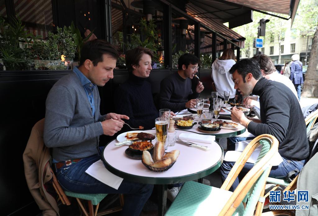 5月19日,人们在法国巴黎一家餐厅用午餐。