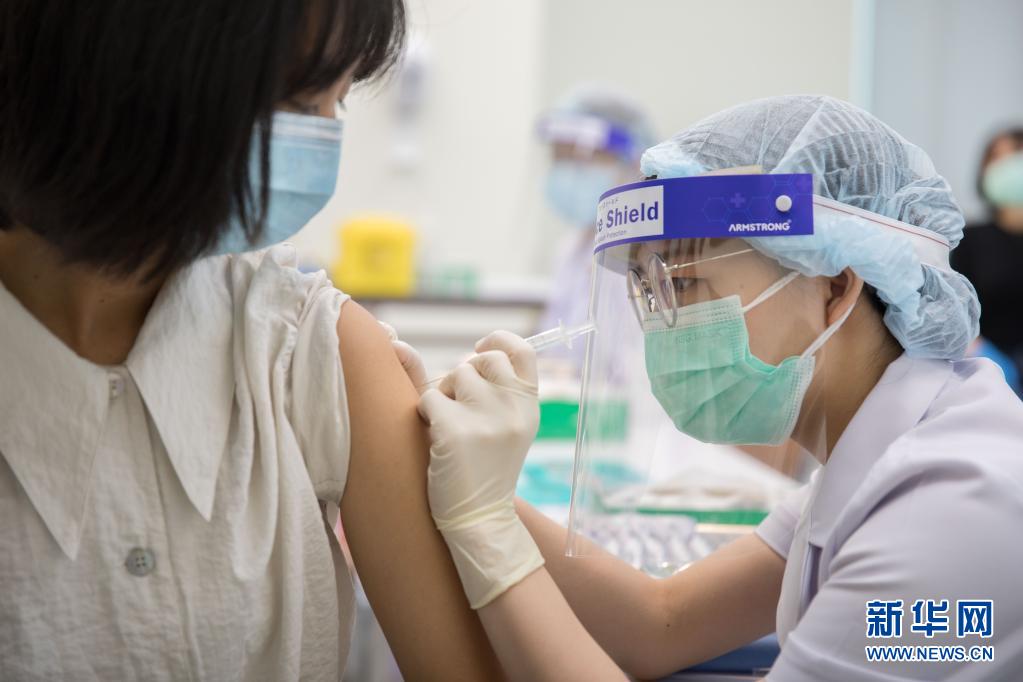 5月20日,医务人员在泰国曼谷邦叻区疫苗接种中心为中国公民接种疫苗。新华社记者 张可任 摄