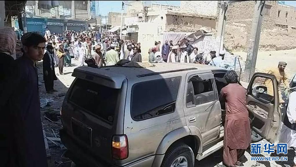 5月21日,人们聚集在巴基斯坦杰曼的爆炸现场(手机照片)。新华社发