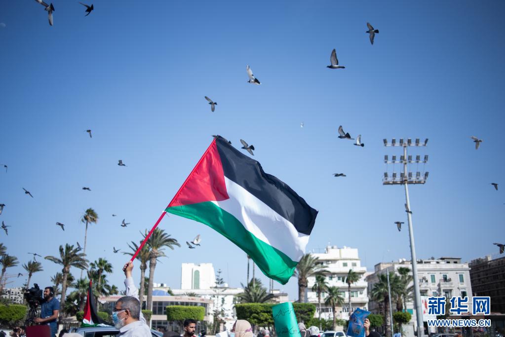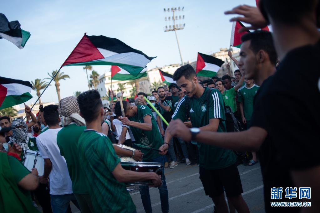 5月21日,人们在利比亚的黎波里庆祝巴以达成停火协议。新华社发(纳达·哈里卜摄)