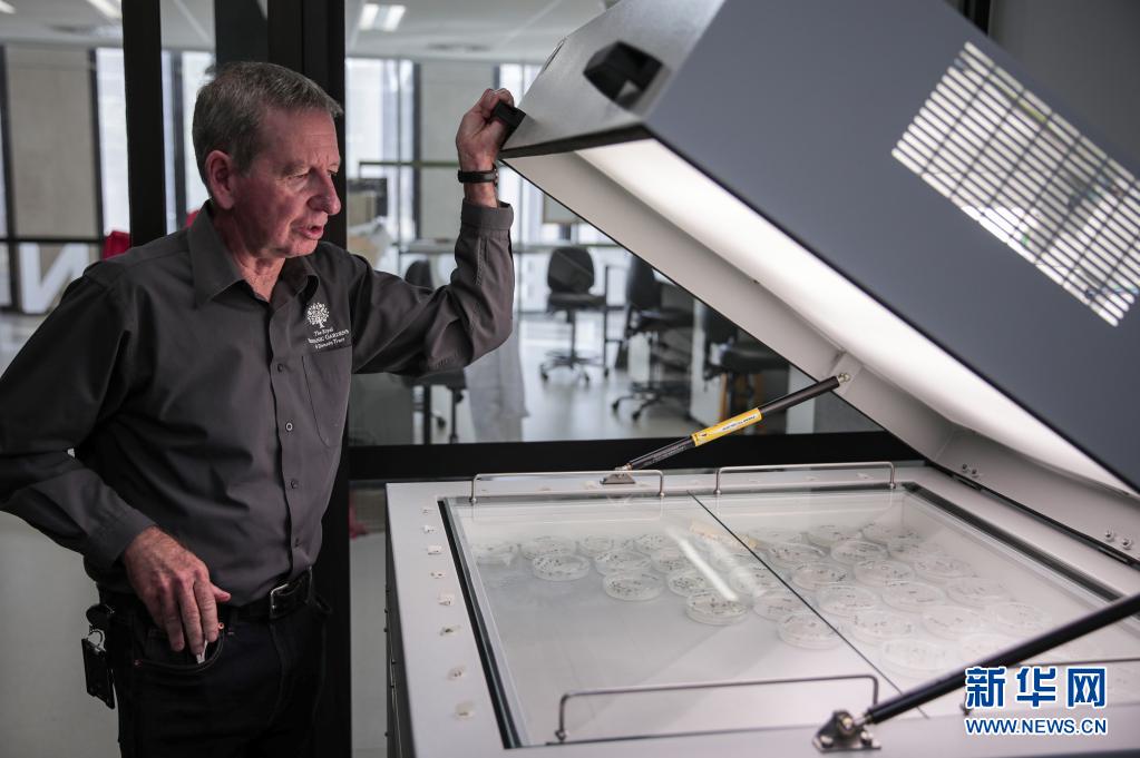5月12日,位于澳大利亚悉尼郊区的“种子银行”的经理彼得·库尼奥在给记者做介绍。 新华社记者 白雪飞 摄